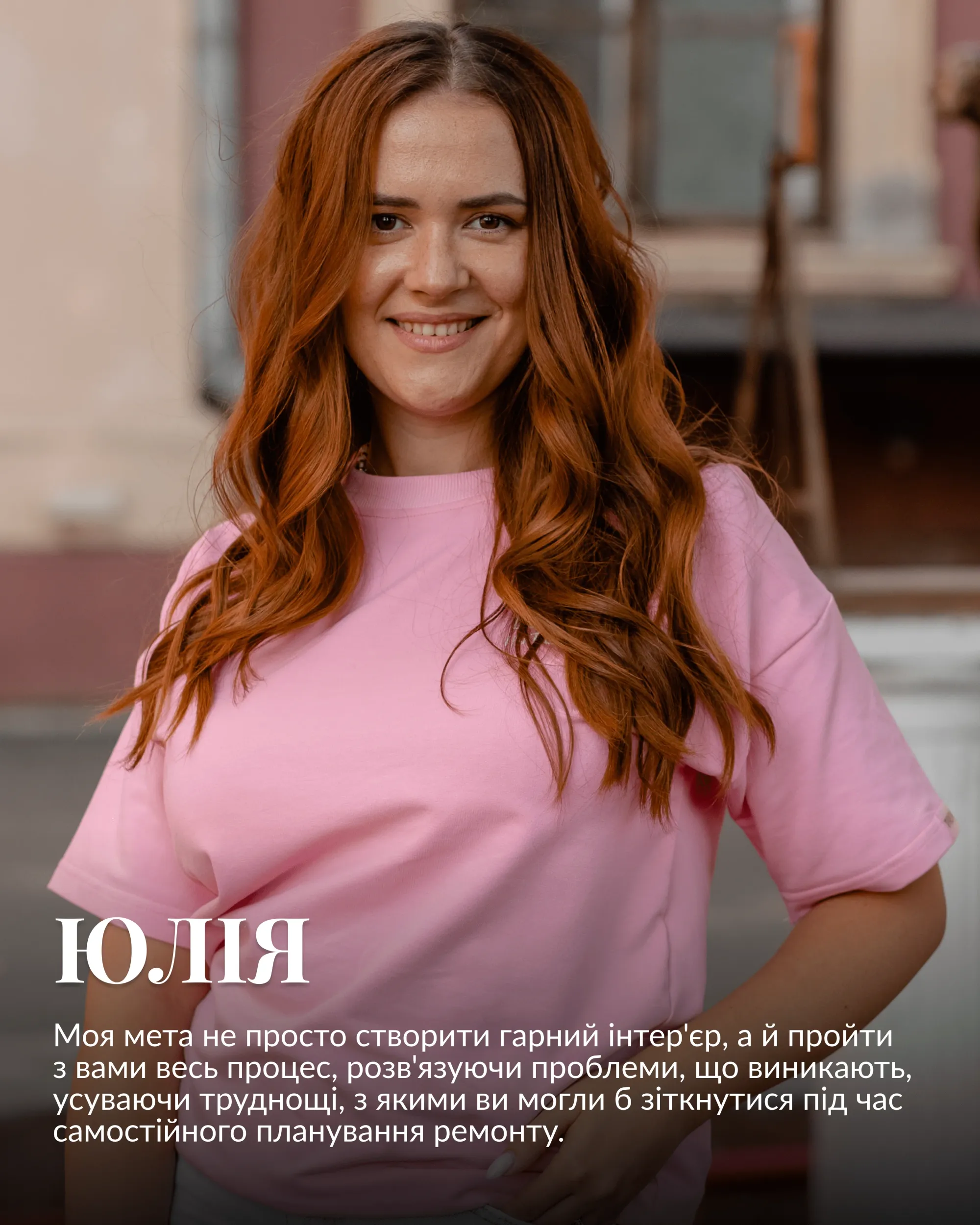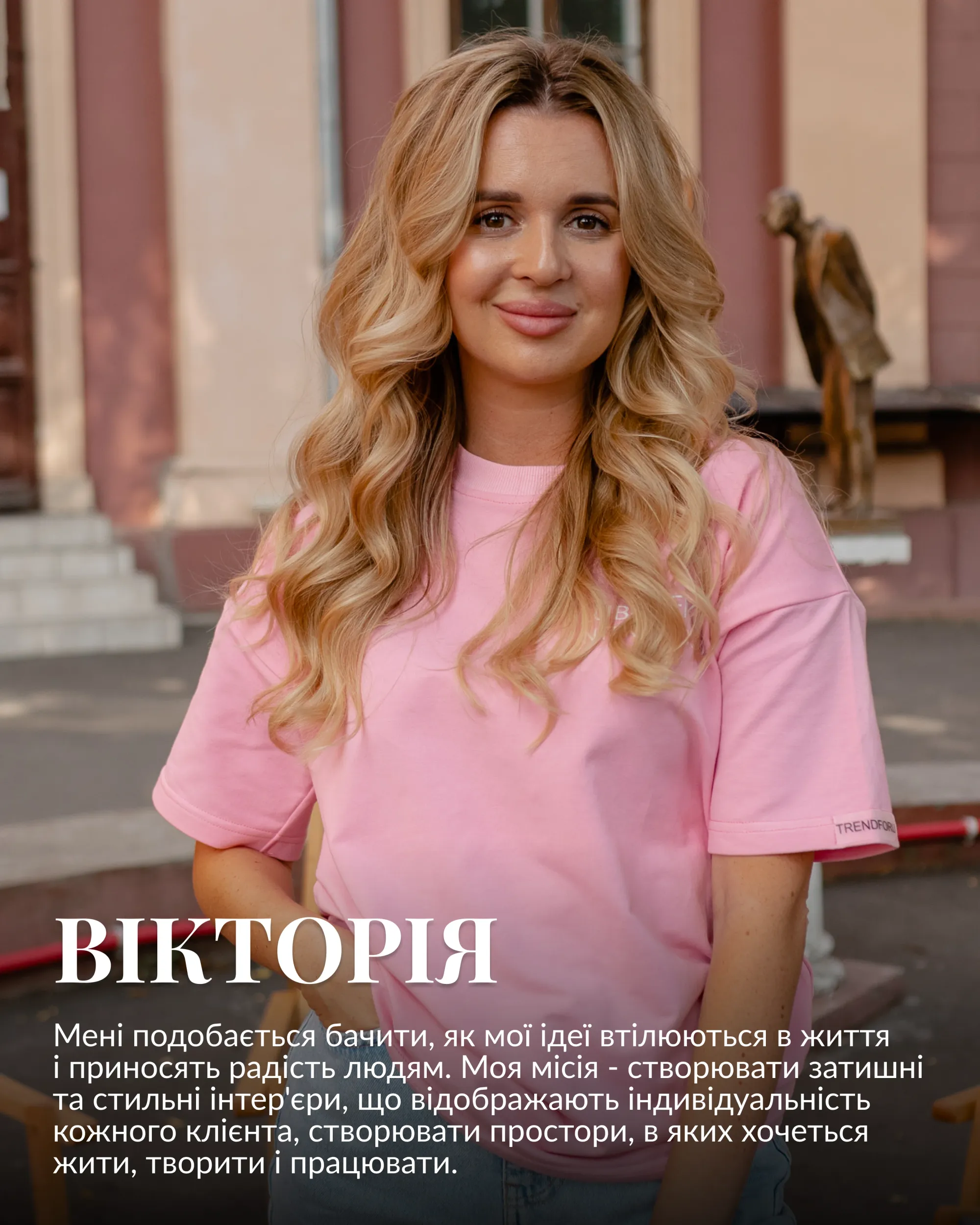 Щодня ми з командою створюємо мої найпрекрасніші й улюблені дизайни інтер'єру, якими я живу і дихаю.